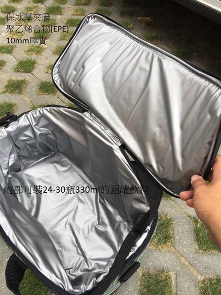材質:環保條紋布、內布為PVC、保冰厚夾層聚乙烯合物(EPE)10mm