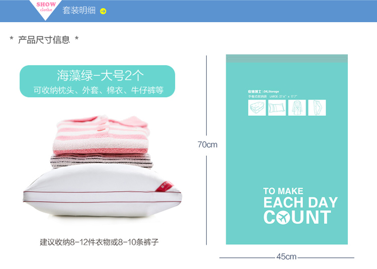 【品名】: 手卷壓縮袋~大號
